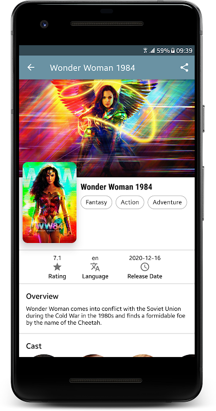 • الوصول إلى قائمة أعضاء فريق التمثيل لفيلم معين أو سلسلة.
