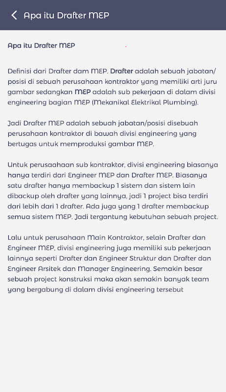 Aplikasi Drafter MEP ini berisi Materi Pembelajaran Drafter Mekanikal Elektrikal Plumbing