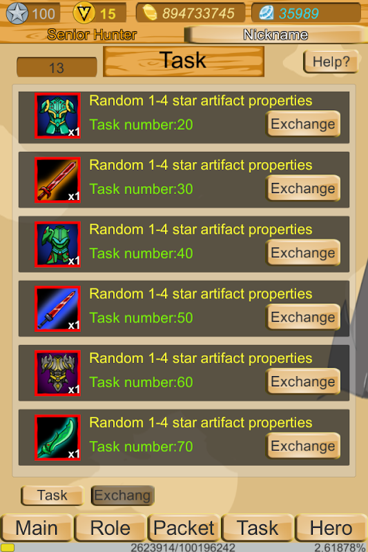 * مهمة جديدة وبسيطة لأول مرة مسح بعيدا، والقيام بالمهام مستوى له على الطاولة، وأحيانا تتعثر في مهمة أكثر صعوبة لتحسين القدرة القتالية سوف تنتهي بعد ذلك. نقاط يمكن استبدالها في الماس كبار الشخصيات المهمة، الكنز، والتحف وغيرها.