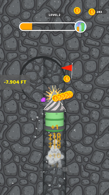 Drill Up هي لعبة حفر ممتعة للغاية حيث تقوم بترقية الحفار الخاص بك عندما تصل إلى القمة!