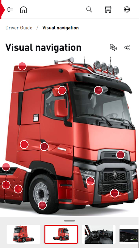 يتيح لك التطبيق إمكانية الوصول بسرعة إلى دليل المستخدم لعربة Renault Trucks الخاصة بك. متوفر لجميع عربات Renault Trucks التي أُنتجت اعتبارًا من منتصف عام 2021. يوفر التطبيق العديد من طرق التصفح، بالإضافة إلى خيار تنزيل المحتوى للوصول إليه دون الاتصال بالإنترنت.