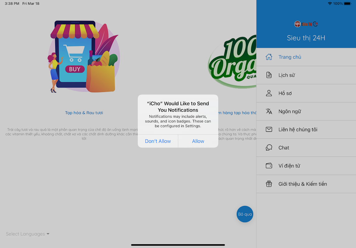 2: افتح التطبيق ، وقم بتمكين الوصول إلى الموقع والإشعارات
