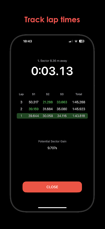 يتميز التطبيق بمؤقت دقيق للّفات مع خاصية الكشف التلقائي عن اللفات وتوقيت القطاعات، بالإضافة إلى مقارنات مع أداء السائقين الآخرين، وتحليلات شاملة لأداء كل سائق، تشمل التسارع، وقوى التسارع الجانبي، والسرعة القصوى، وإمكانية تحسين أداء كل قطاع، وتتبع اللفات عبر نظام تحديد المواقع العالمي (GPS).