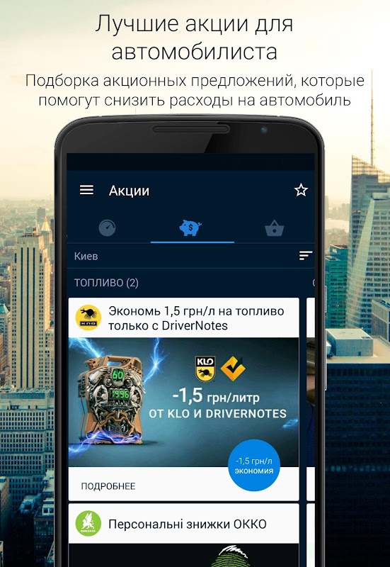 بالنسبة لأوكرانيا، وظائف جديدة متوفرة التي تساعد على تتبع كل الخصومات والعروض الترويجية على الوقود والتصليح والصيانة وقطع الغيار والتأمين (التأمين MTPL). تطبيق يأخذ بعين الاعتبار نوع خاص من السيارة، والوقود، وخصائص سطح الطريق، وغيرها من المعالم. وهكذا، فإن المستخدم لا يقتصر فقط على تلك أو خصومات أخرى أو الترقيات، وعرض شخصي للحصول على أفضل من سيارته ومحفظة.