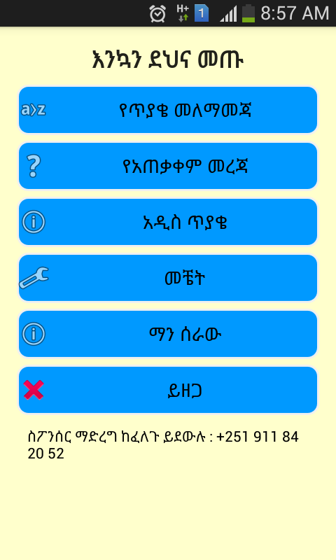 وهذا التطبيق مساعدة السائقين جديدة لتحضير لامتحان نظريتهم في إثيوبيا.