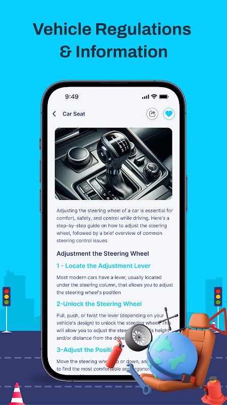 أتقن معرفة سيارتك من خلال مجموعة شاملة من أسئلة الاختبار. تساعدك هذه الميزة، التي تغطي جميع مفاهيم القيادة الأساسية، على التفوق في اختبارات القيادة ومعالجة سيناريوهات العالم الحقيقي بثقة.