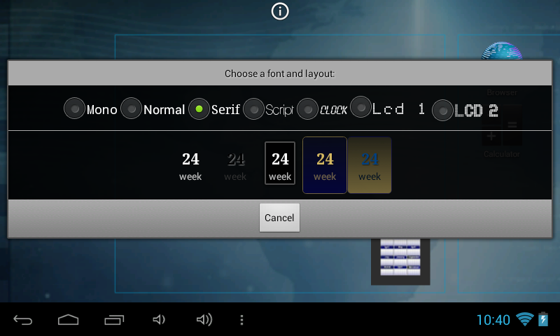 New setting for widgets: Can choose to display the 'day of week' or 'week' below the week number.