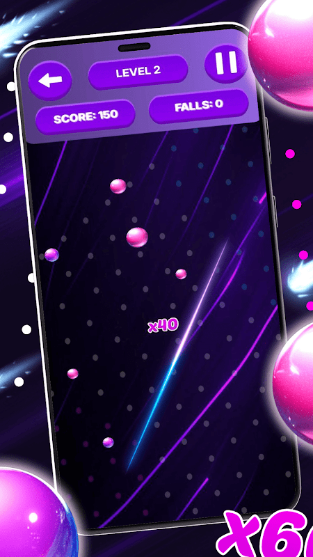 Cut the balls as they fall, get points. Each ball has its own multiplier: ×10, ×20, ×30... up to ×60. The higher the multiplier, the more points you get.