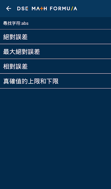 這程式是為預備香港文憑試數學科-必修部分的中學生而設。同學可找出所需要的公式和定理,有圖片作解釋。同學亦可標記想要的頁面作溫習之用。程式支援繁體,簡體和英文。