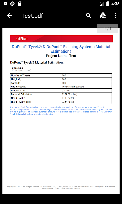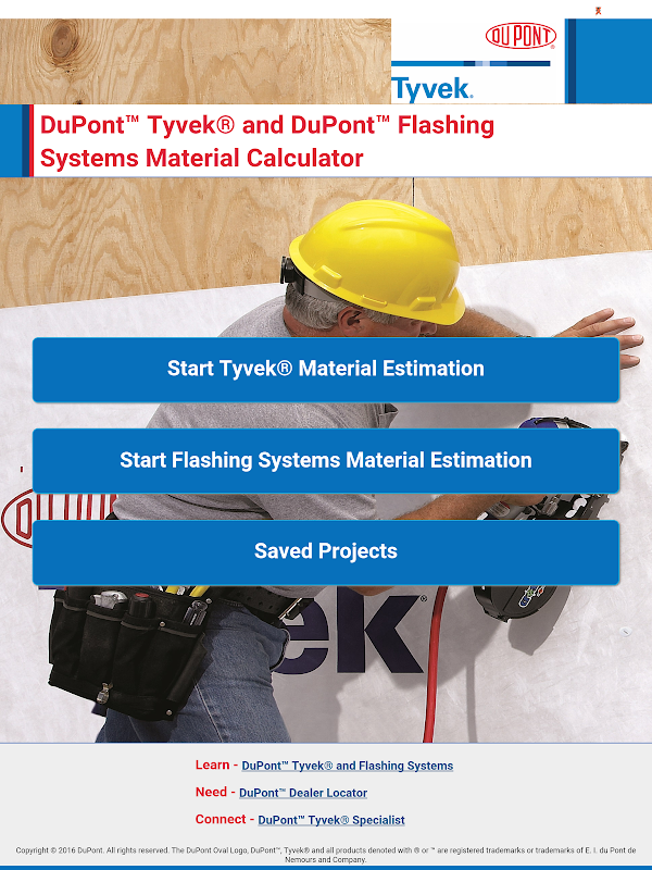 DuPont™ Tyvek® Weatherization Calculator helps users determine material quantities of Tyvek® weather barrier wrap, and flashing system products. Estimate how many rolls of material to purchase after entrering dimensions of building size and penetrations. Evaulate more accurately with the ability to choose construction use and style. Next, share calculations easily by saving and sending PDF files.
