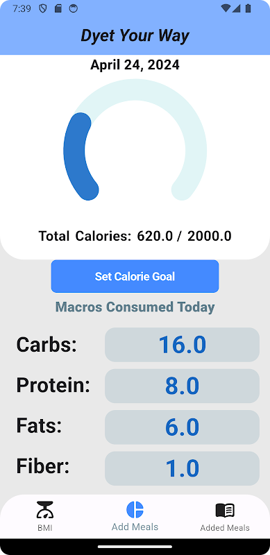 جهاز تعقب مبسط للسعرات الحرارية يقوم بإحصاء جميع الوجبات وكميات السعرات الحرارية الخاصة بها بالإضافة إلى بعض وحدات الماكرو مثل الكربوهيدرات والبروتين والدهون والألياف في الوجبة. يتم الإبلاغ عن جميع المعلومات ذاتيًا وتحتوي أيضًا على حاسبة بسيطة لمؤشر كتلة الجسم لقياس الصحة العامة.