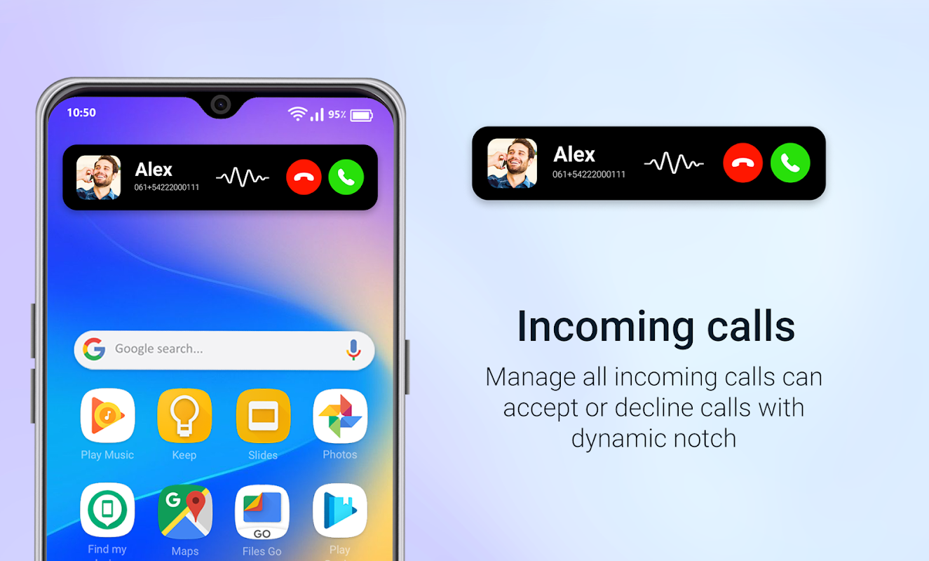 Quick and easy to show all notifications on your android phone screen can easily open and see with Dynamic Island. IOS notch Display all, alerts, notifications, and phone calls, Dynamic Island notch will help you to do that.