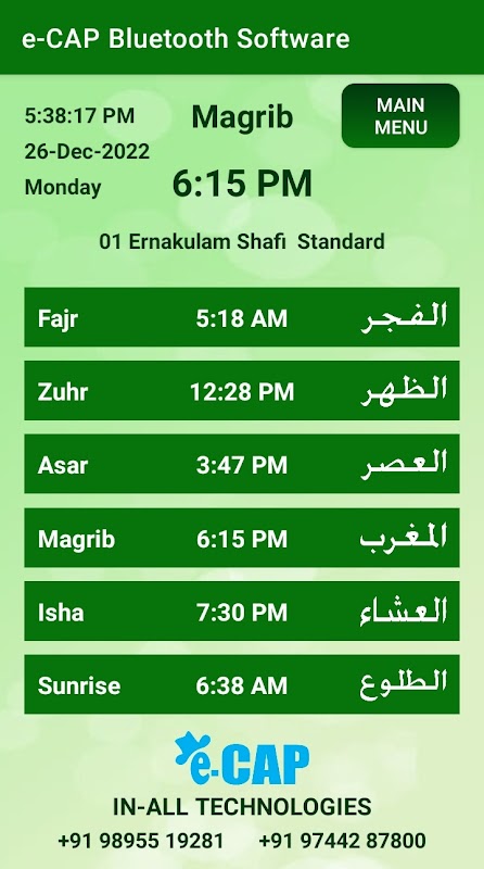 يمكنك استخدام "برنامج e-CAP Bluetooth" للحصول على أوقات الصلاة اليوم وأيضًا لتكوين عروض أوقات الصلاة الخاصة بـ e-CAP مع اتصال بلوتوث.