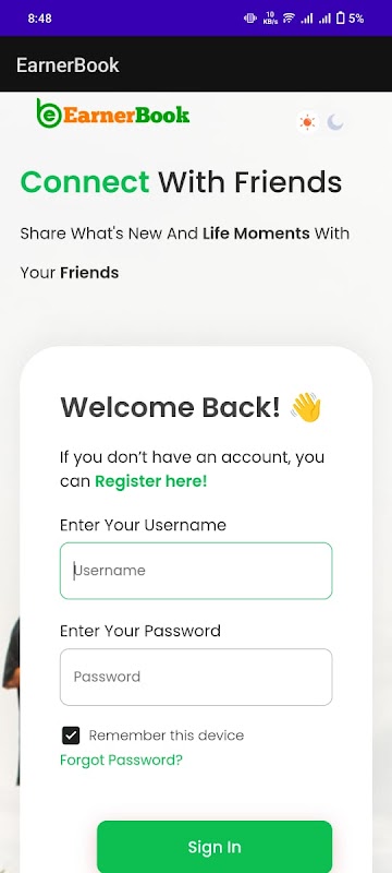 Earnerbook هو موقع ويب يتيح للمستخدمين التواصل مع الأصدقاء وكسب المال.