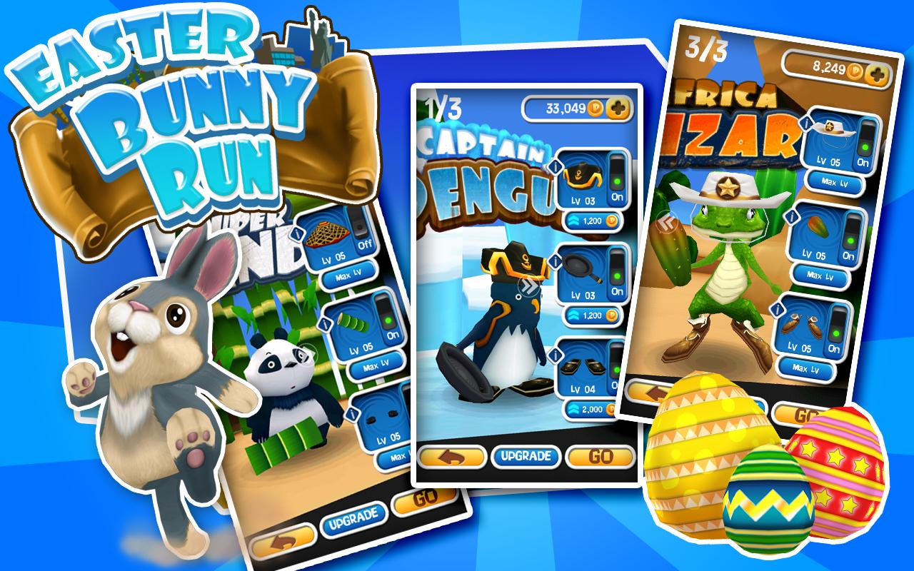 Easter Bunny Run is a FREE game with addictive and exhilarating arcade gameplay. Help the cute bunny as he runs, jumps, slides and whirls through the underbrush to outrun and outmaneuver the fearsome Grizzly Bear in this high-octane chase!