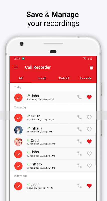 - Record calls automatically with high quality while you in incoming calls or outgoing calls.