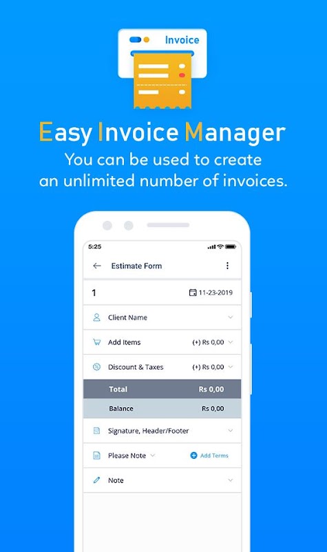 Invoice Manager with we can access and edit old invoices also. Features of Easy Invoice users can send the invoice to their customers using messaging applications. The format of Easy Invoice is completely editable which makes it easier and simple to use. With the help of easy Invoice, users can create or manage bill/purchase order or also manage tax according to their items or products.