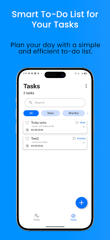 💡 سواء كنت تخطط ليومك، أو تدير أهدافك، أو تكتب أفكارًا سريعة فقط، فإن قائمة الملاحظات والمهام السهلة تساعدك على القيام بكل ذلك - بشكل أكثر ذكاءً وأسرع.