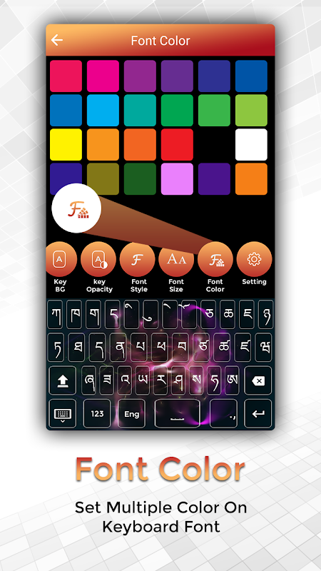 من السهل الكتابة التبت لوحة المفاتيح، الخطوط والسمات لها نمط الخط besutiful، والألوان حتى يمكنك أيضا زيادة ونقصان حجم الخط