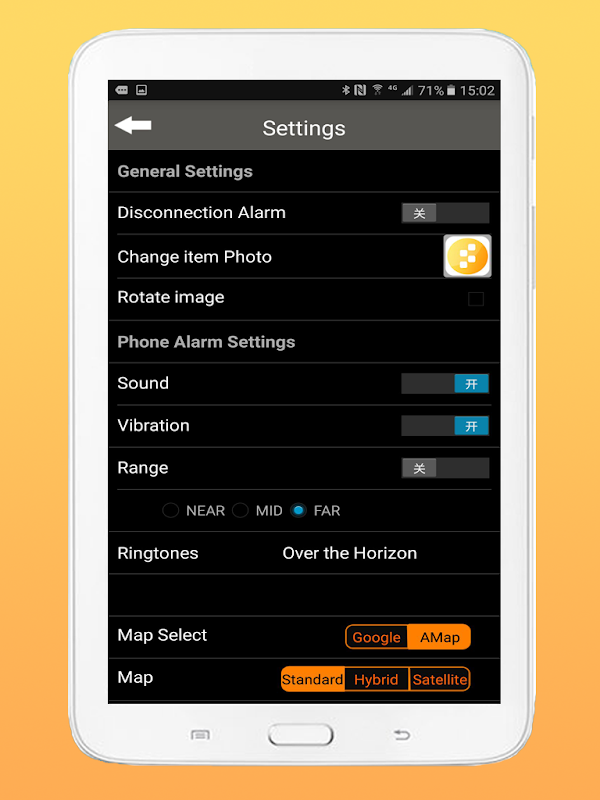 يتحدث في الأساس، وعندما يذهب العثور على مفتاح خارج النطاق، فإن التطبيق ينبهك مع الصوت والاهتزاز وفلاش. يمكن ضبط المنبه على الباحث عن المفتاح، الهاتف، أو كليهما.