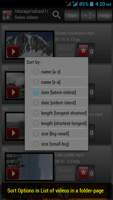 ♦ Automatically detects videos in the phone memory and SD Card and lists them with all the important info clearly, allowing you to quickly locate and play the video.