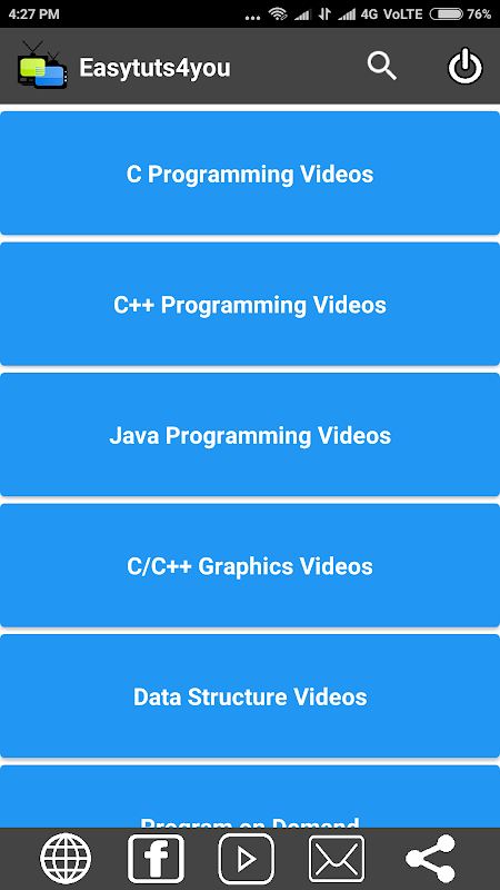Here you'll find C, C++,Java, Data Structures and almost all major Programming Tutorials(video) absolutely for FREE. It covers your complete computer programming syllabus(10th to MCA) and specially prepared for learning point of you. We Guarantee you that It's class like environment with practical example will make your programming knowledge even more strong.