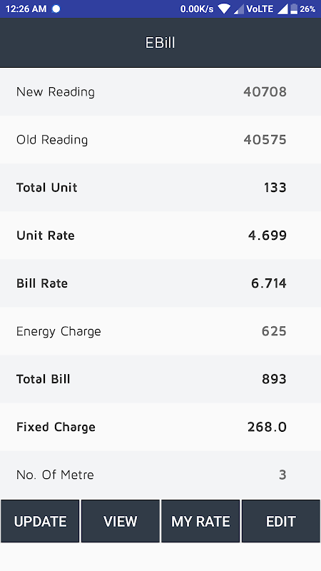 EBill provides best calculation of Electric Bill of main and other meters.Others Meters bill can be calculated on fixed unit rate and on main meter unit rate and meter charge. This app Store previous reading and help user to calculate bill easily.