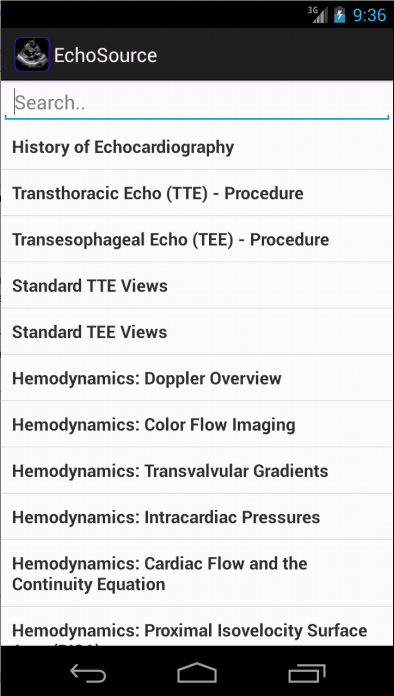 يوفر EchoSource لمحة مفصلة عن الاضطرابات السريرية وتقييمها باستخدام ضربات القلب، وتتضمن الأرقام وأشرطة الفيديو التعليمية وكذلك استعراض الأدب الطبي ذات الصلة. سواء كنت مبتدئا مجرد تعلم التصوير وجهات النظر ضربات القلب القياسية، أو الطبيب ممارسة تحتاج إلى إشارة سريعة للمبدأ التوجيهي المستندة إلى معايير تخطيط صدى القلب لتشخيص مدى خطورة الإصابة بأمراض القلب صمامي، EchoSource هو التطبيق المثالي لمساعدتكم.