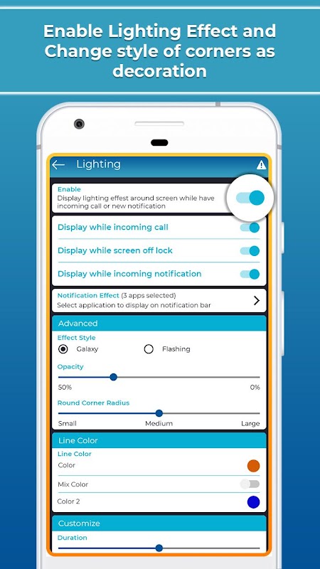 - Galaxy Edge Lighting، Galaxy Edge Rounders Corners، Galaxy Edge Notification effect، Rounded Corners