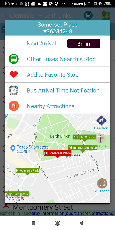 في الوقت الحقيقي تتبع الحافلات في مدينة ادنبره ، القريبة POI البحث والتخطيط الاتجاه