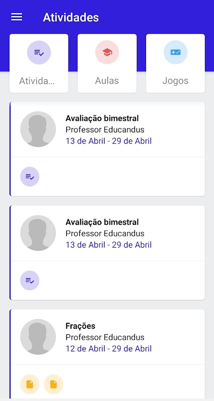 Aplicativo que fornece as principais funções disponíveis na plataforma Educandus.