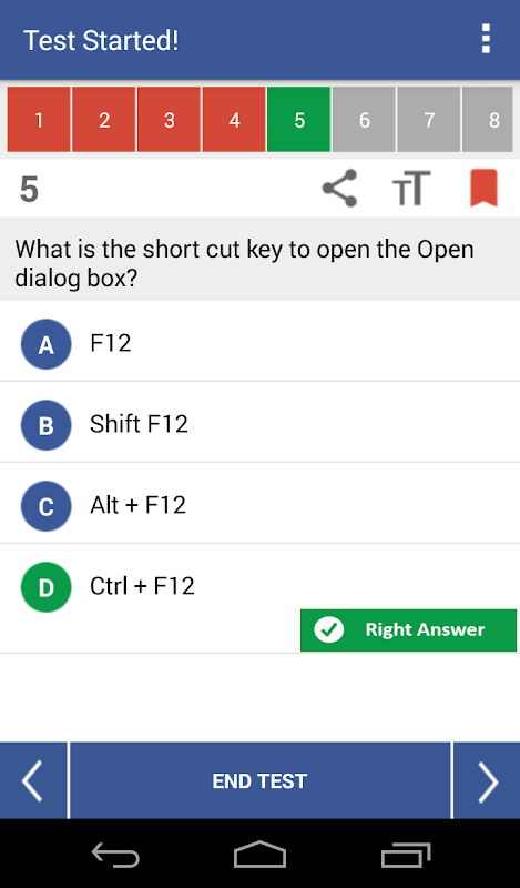 يوفر تطبيق الاختبار على الانترنت سلسلة من الأسئلة متعددة الاختيار (MCQ) وملاحظات موجزة للتعلم حول مواضيع مثل مايكروسوفت وورد، MS-باور بوينت، MS-Access و HTML.