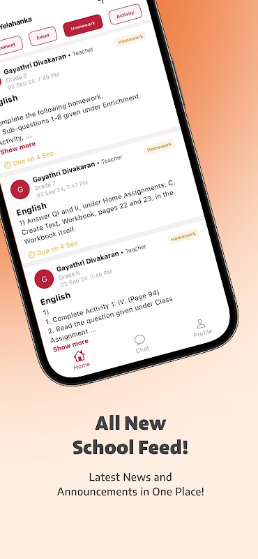 التواصل بسلاسة مع الطلاب وأولياء الأمور والزملاء من خلال التطبيق. أرسل الإعلانات والتحديثات في الوقت الفعلي، مما يضمن إعلام الجميع وعلى نفس الصفحة.