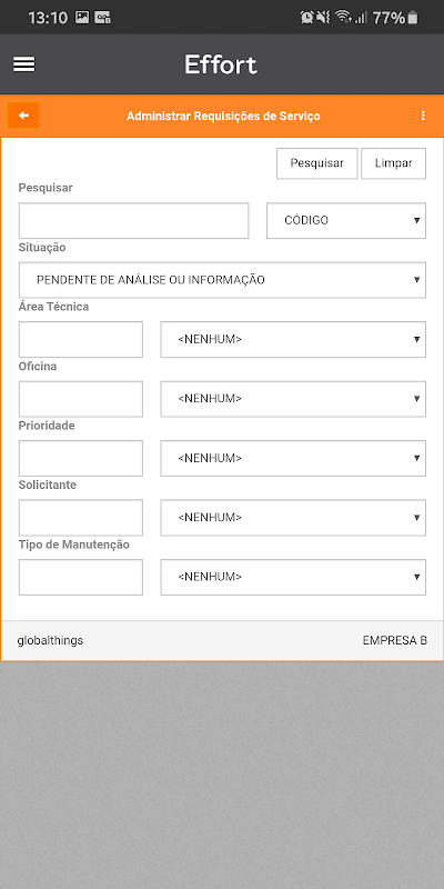 Desenvolvido exclusivamente para abertura de requisição de ordem de serviços de forma prática e descomplicada, o aplicativo Effort Request tem integração nativa com o sistema Effort Globalthings. Conte com recursos e funcionalidades simples para tornar seus processos ainda mais ágeis na palma da sua mão, como: