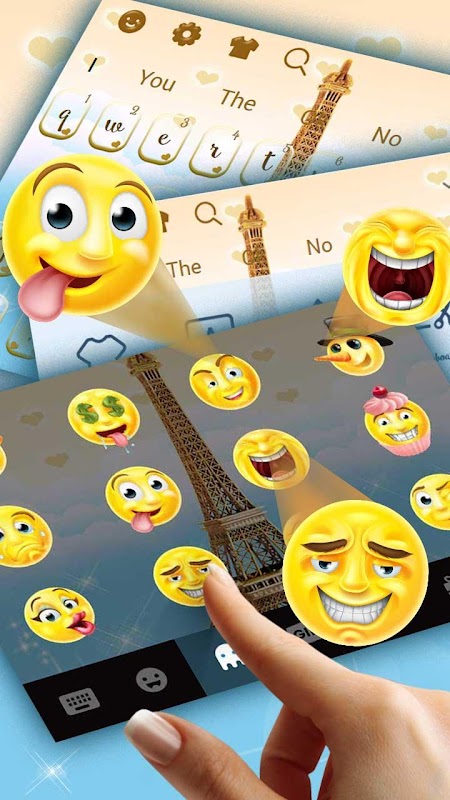 لوحة المفاتيح برج ايفل تأتي مع أكثر من 1000 صورة تعبيرية شائعة وصور متحركة أنيقة. يقدم توقعات تلقائية دقيقة.