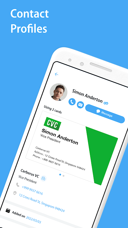 تعد Eight أيضًا شبكة احترافية قوية تتيح لك التواصل مع مستخدمي التطبيق الآخرين وتوسيع فرص حياتك المهنية. يؤدي مسح بطاقتك تلقائيًا إلى إنشاء ملف تعريف Eight الخاص بك. يمكنك بعد ذلك عرض مهاراتك وتوسيع فرصك المهنية ومشاركة الأخبار والتحديثات مع شبكة Eight الخاصة بك والعثور على فرص العمل والبحث عن المواهب.