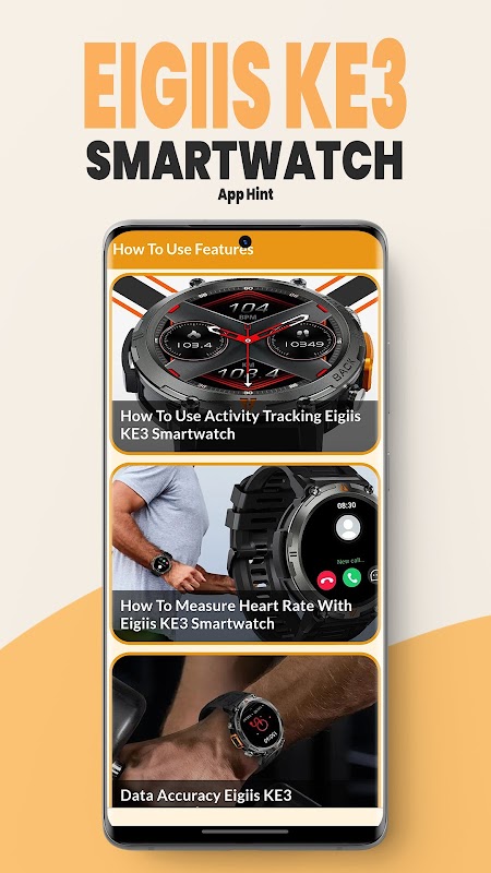 تطبيق "Eigiis KE3 Smartwatch App Hint" ليس تطبيقًا رسميًا ولا ينتمي إلى Eigiis. هذا التطبيق هو مجرد دليل معلومات عامة.