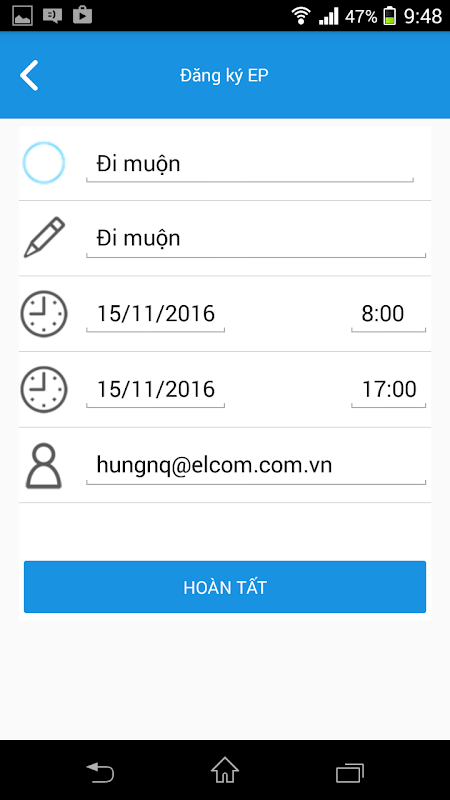 Cập nhật nghỉ, muộn, bận của nhân viên