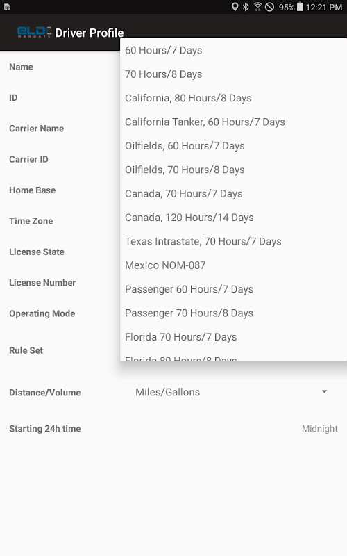 تطبيق متوافق لتسجيل حالة واجب السائق وتلبية اللوائح التالية: