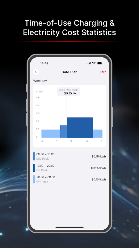 - إعدادات الشحن المخصصة: قم بتخصيص جداول الشحن الخاصة بك وفقًا لأسعار الكهرباء في أوقات الذروة وخارجها وتفضيلات السفر الفردية.