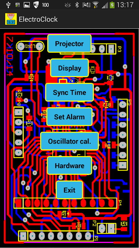The time is displayed on a 0.5inch 4 digit LED display and a projector which displays the time on the ceiling for night use.