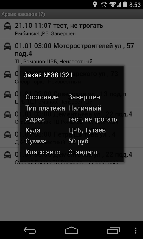 * Завершать заказ, указывая сумму, либо без ее указания, используя предварительную стоимость поездки, как конечную.