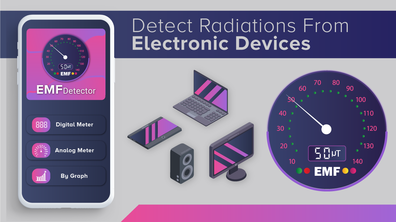 Emf radiation detector have multi ways to find emf electromagnetic field. Digital Meter, Analog Meter and Graph. Through these ways you can easily find electromagnetic field emf. Emf radiation detector is simple app for everyone to use. When emf radiation detector detect electromagnetic field the bell sound is start. Emf detector show message when detect emf electromagnetic field. And also show message if emf not find.