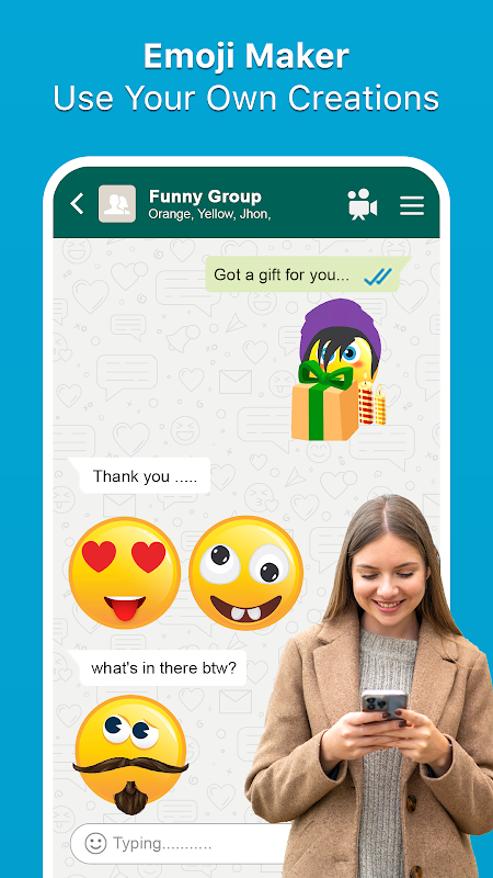 تساعد ميزة محرر الرموز التعبيرية على تحرير الرموز التعبيرية. يجعل تصميمات Emojis كما تريد لجعل محادثتك أكثر متعة من خلال صانع الرموز التعبيرية المخصص لمنشئ الرموز التعبيرية (تطبيق الرموز التعبيرية).