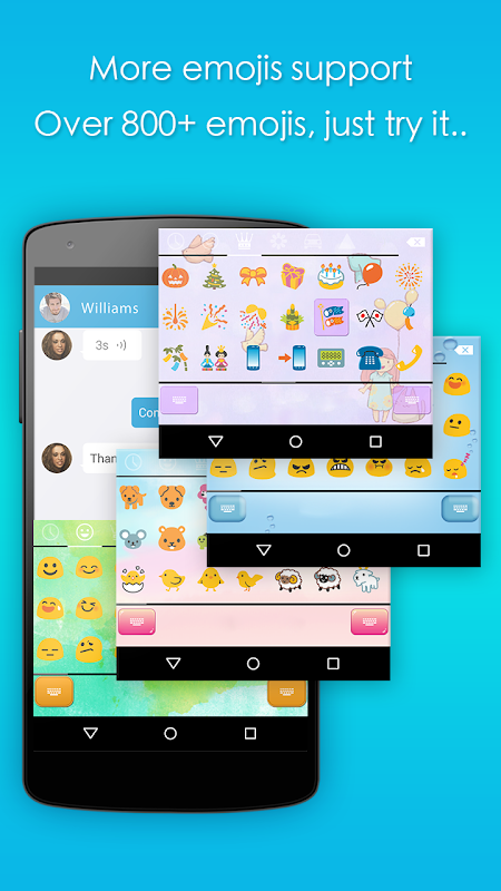 It is an cool personal free kitkat style emoji keyboard that can support to input emoji in anywhere, custom a lot of beautiful keyboard themes.