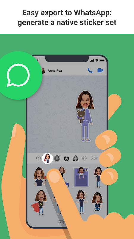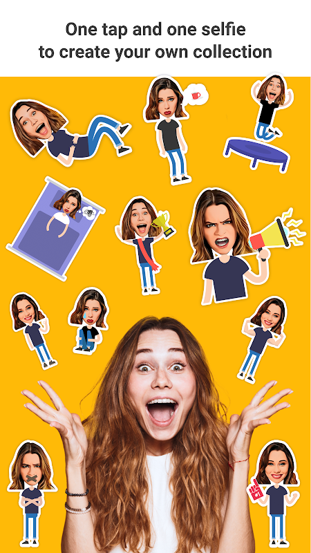 Enrich the way you chat with Emolfi. Get yourself dozens of selfie-based emotional stickers to use in WhatsApp, Messenger, or any other chat app and social network. In addition to that, stickers are automatically combined with the text you type turning simple chatting into a fully visualized messaging.