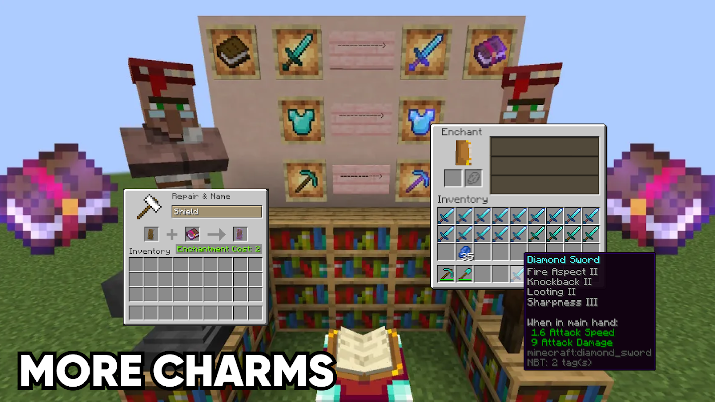 لتحسين Enchantments Mod لـ Minecraft، يحتاج مستخدمو اللعبة إلى إنشاء سندان. 🗡 الشيء الرئيسي هو أن يكون لديك سبيكة غير عادية يمكنك الحصول عليها من حداد أو تاجر متجول. 👥 تقدم الألعاب هذه الشخصيات من More Enchantments Mod ولا تؤثر كثيرًا على البقاء، ولكن إذا لزم الأمر للغاية، فإنها ستساعد بالتأكيد في اللعب أو البقاء على قيد الحياة من خلال التخلي عن الإضافات المهمة لعناصر Enchantment Level 1000 Mod. ✨