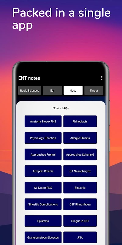 إن تطوير تطبيقات الأندرويد هوايتي الشخصية، وهذا التطبيق هو جزء من جهودي لجعل تعلم طب الأنف والأذن والحنجرة بسيطًا ومنظمًا وسهل الوصول إليه لطلاب الطب في جميع أنحاء الهند.