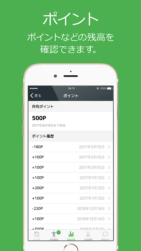 施術履歴や、ポイントなどの残高情報がいつでも手元で簡単確認!