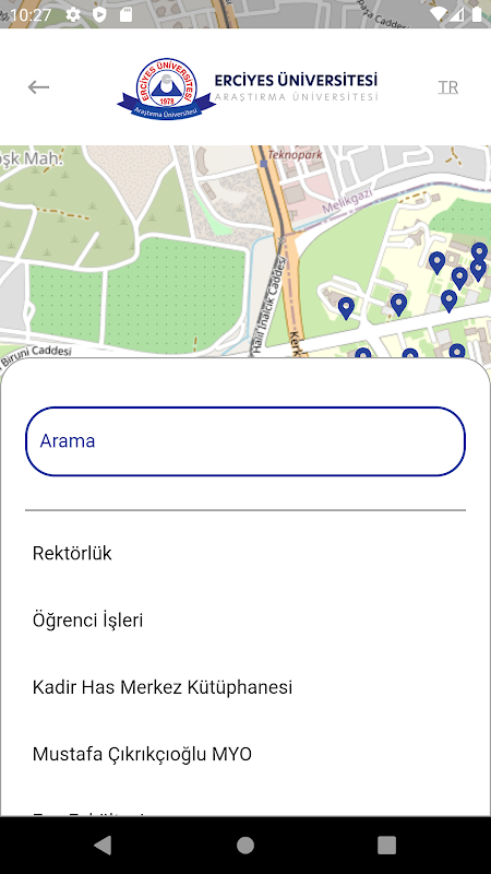 تطبيقات الهاتف المتحرك جامعة إرجييس. تم إعداده للطلاب والموظفين والطلاب المحتملين والموظفين المحتملين والضيوف.